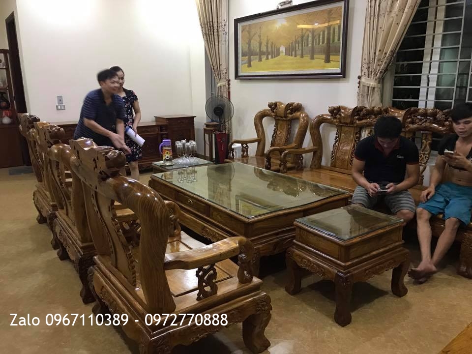 Bàn giao xong bộ bàn ghế minh quốc đào cột 12 gồm 10 món gỗ hương vân nam phi cho gia đình chú Ngợi Việt Trì Phú Thọ.