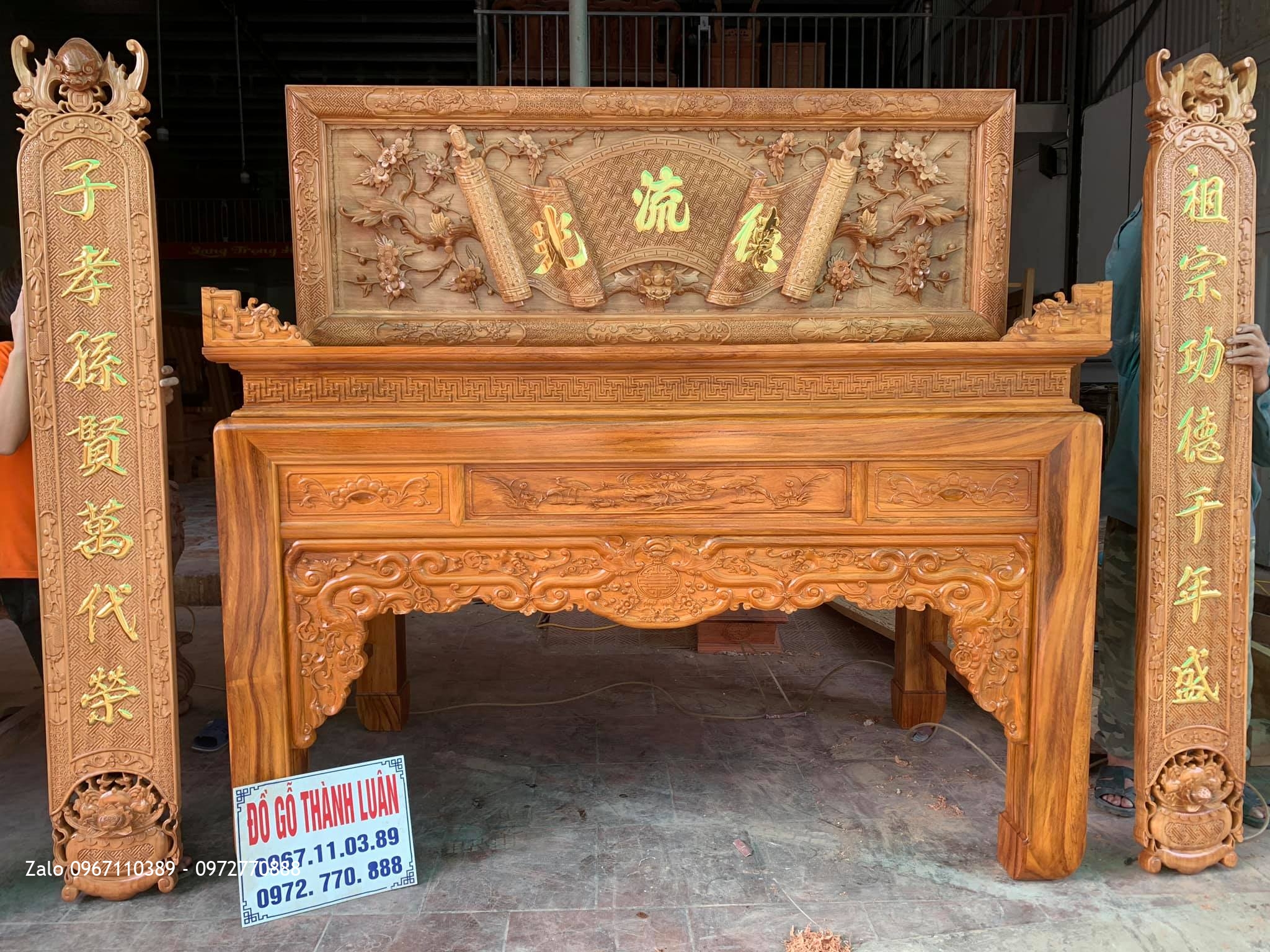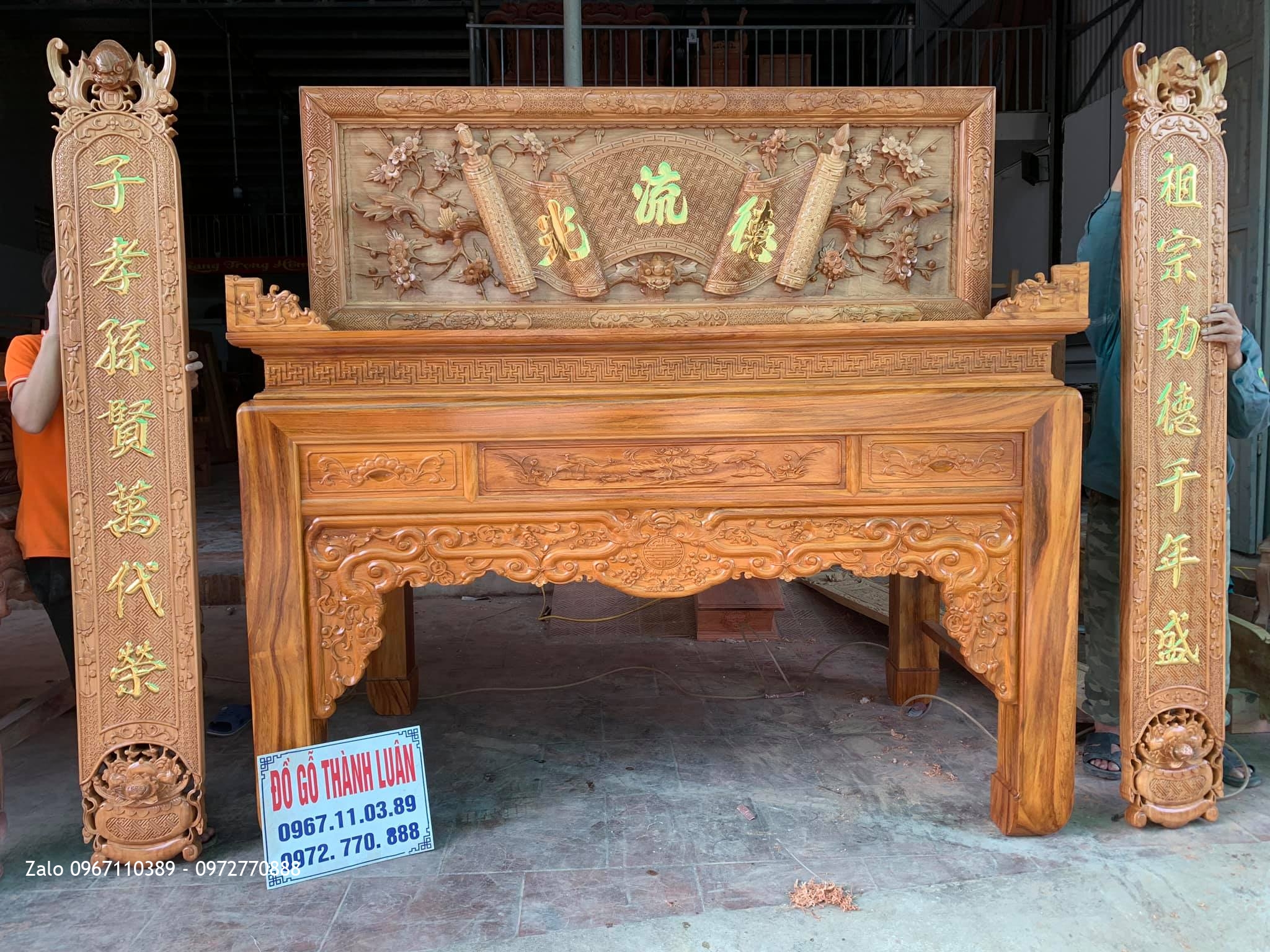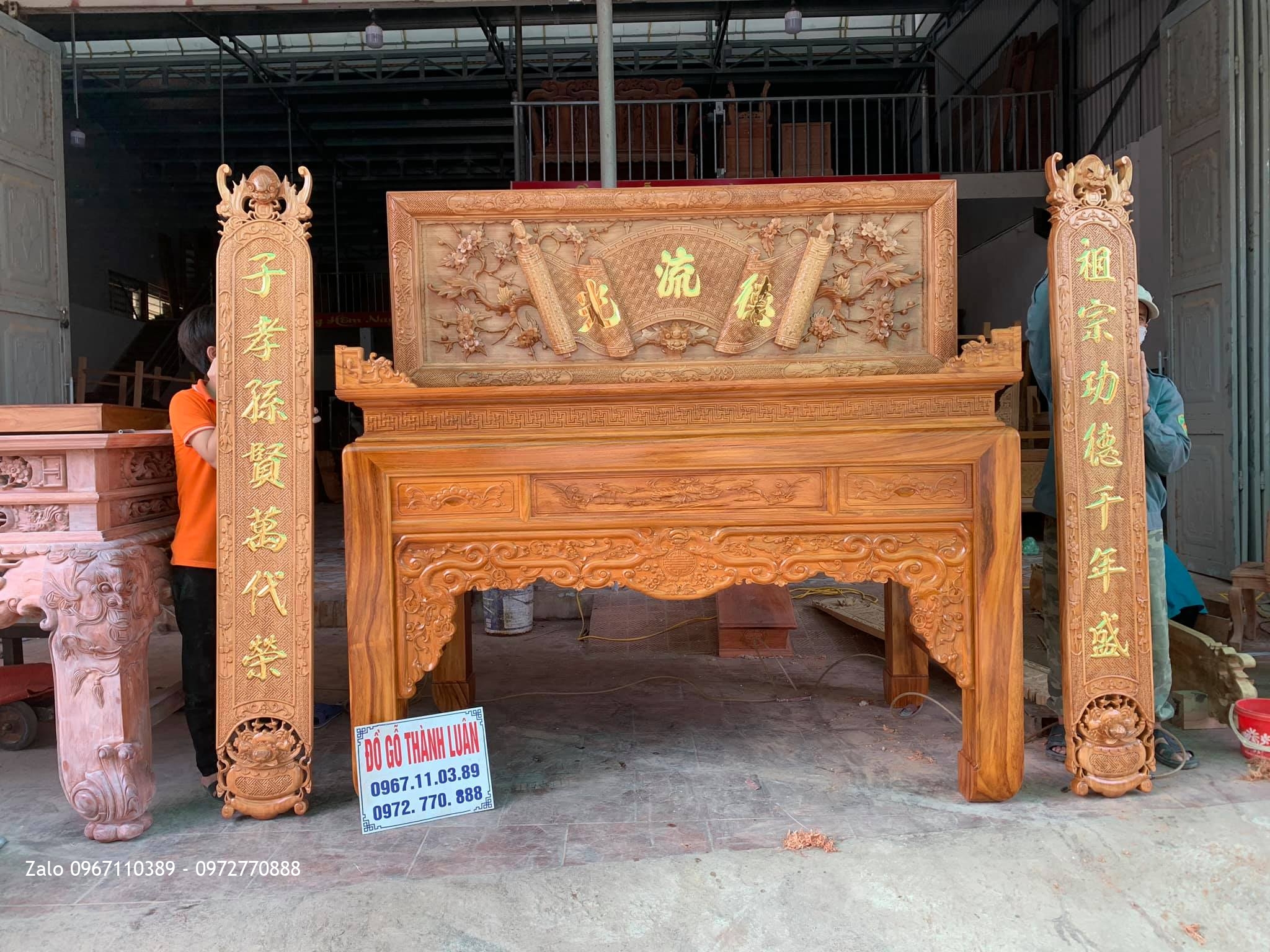 - 1 Chiếc Ban Thờ Triện Phúc Thọ Ngăn Kéo Gỗ Gõ Đỏ 2m17 x 1m27