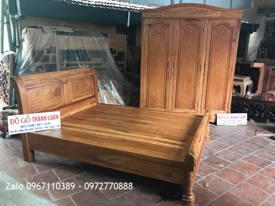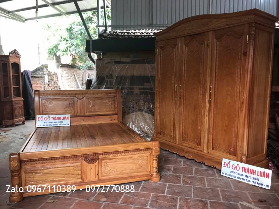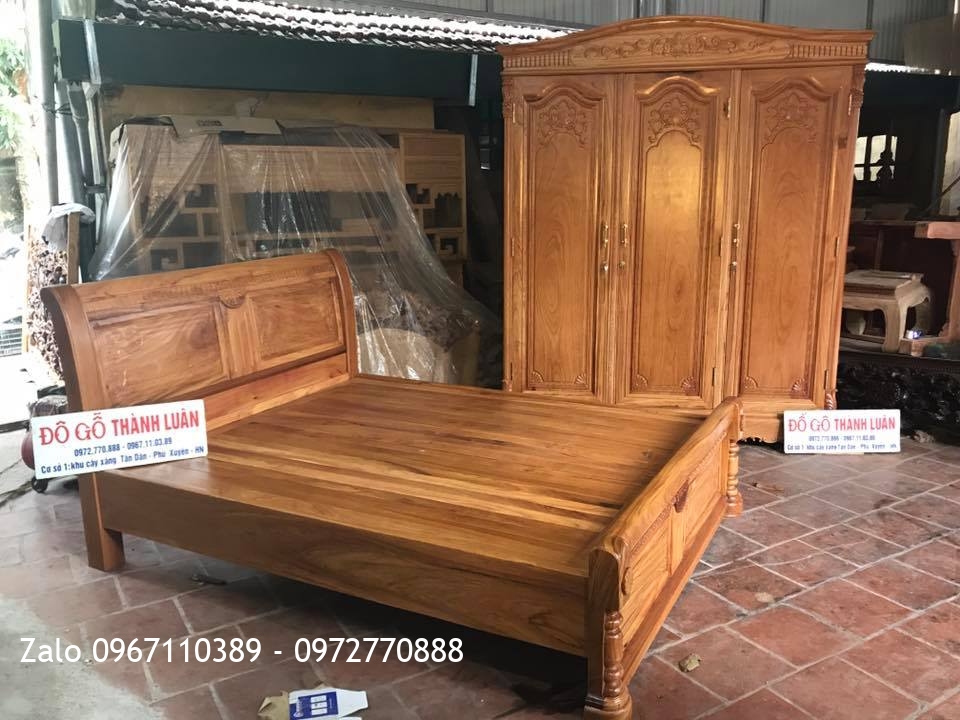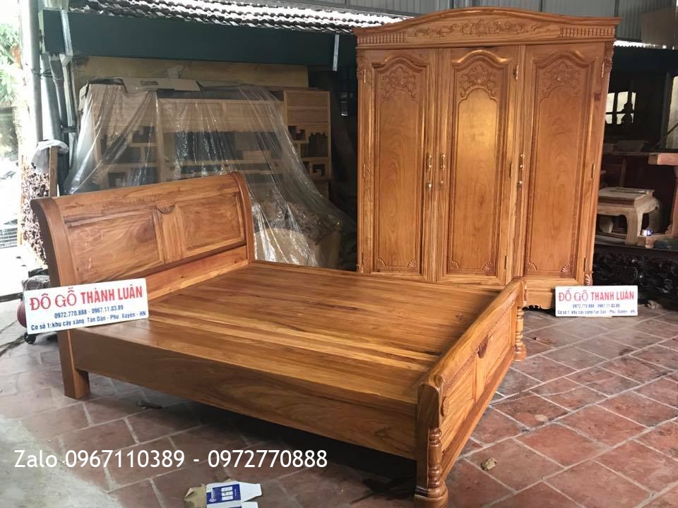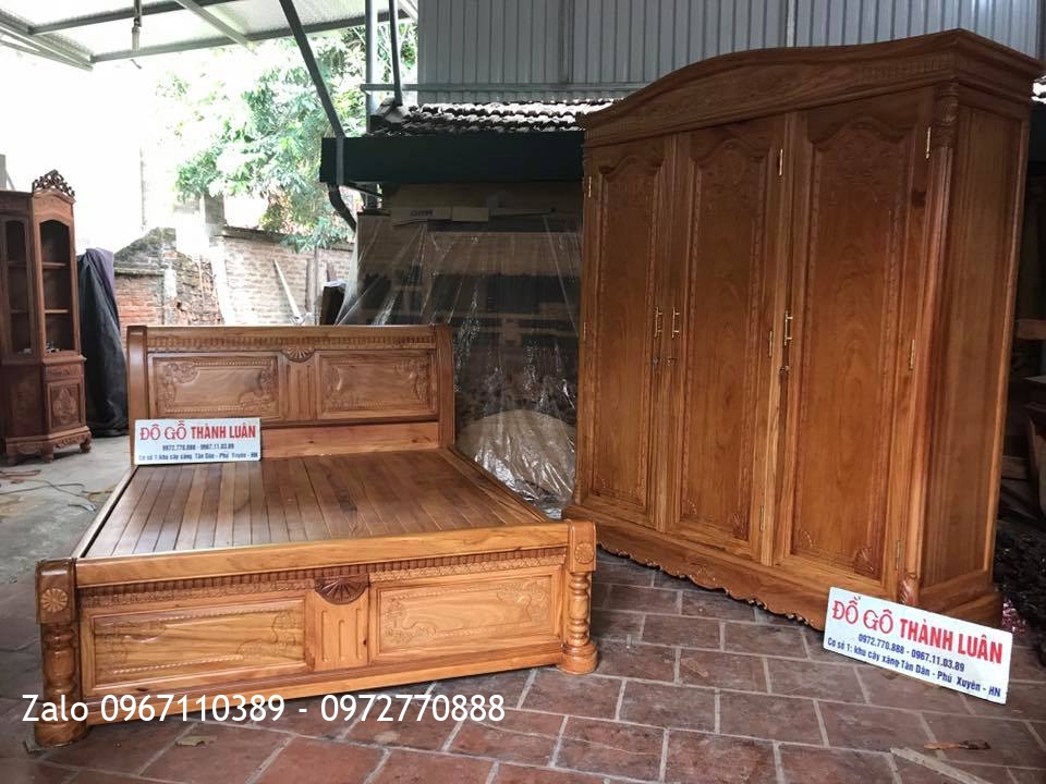 Giường, Tủ Áo 3 Buồng 4 Cánh Gỗ Gõ Đỏ. C Tuấn Thanh Nhàn Hà Nội